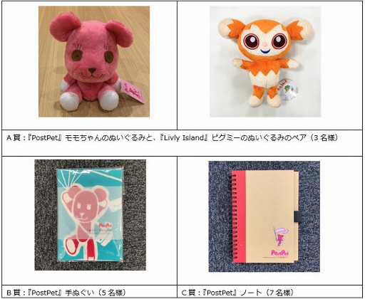 抽選で30名様に『PostPet』や『リヴリーアイランド』のグッズをプレゼントする、Twitterキャンペーンを実施します。リツイートをしてかわいいグッズをゲットしましょう!