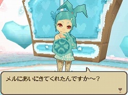 双子の女神だが,その性格は対照的。ポリニアは明るく元気な口調と身振りでもって,主人公に話しかけてくる。そのノリは完全な体育会系だ。一方のメルメネは,おとなしい性格のしっかり者だが,メルヘンチックな思考を持っており,甘えるような口調が印象的。