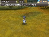 ![]() 「ステルス」を使うと一定時間敵から発見されにくくなり,フィールドの移動が容易になる |