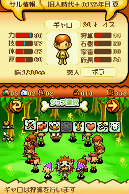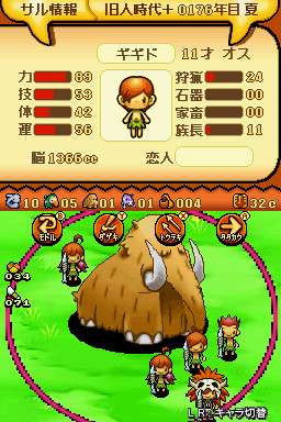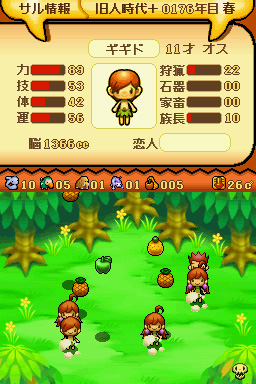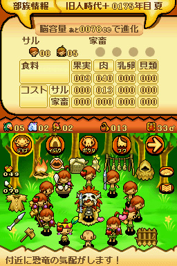 このゲイムは,まさにサルの集団がサバイバルして交配を重ねてヒトへ進化してイくというシンプルな内容なんだけど,その気になればけっこう奥が深いのよ。それこそ進化論がどうのこうのという難しいことをプレイしながら考えようと思えば考えられる,考えたくなければ別に考えなくてもいいって感じの不思議な作品ね。
