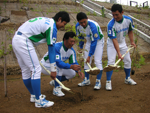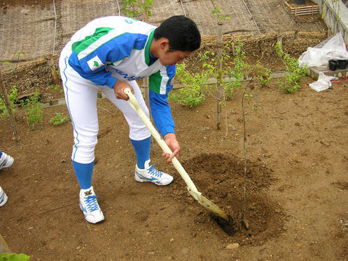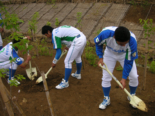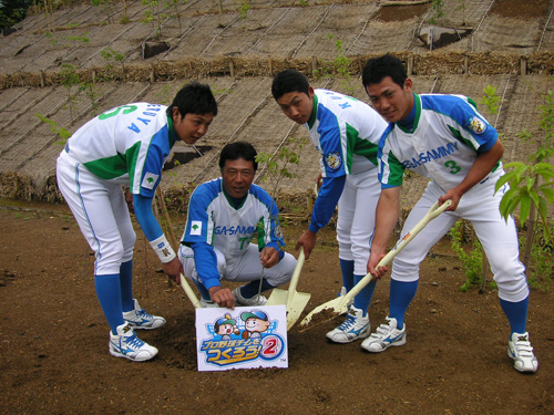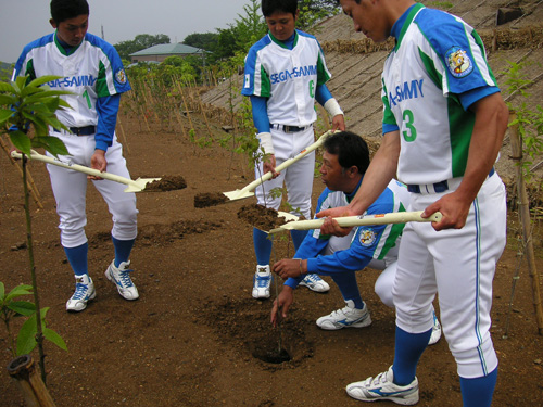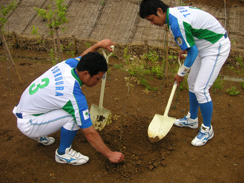 「野球つく2」発売記念,セガサミー野球部がアオダモを植樹