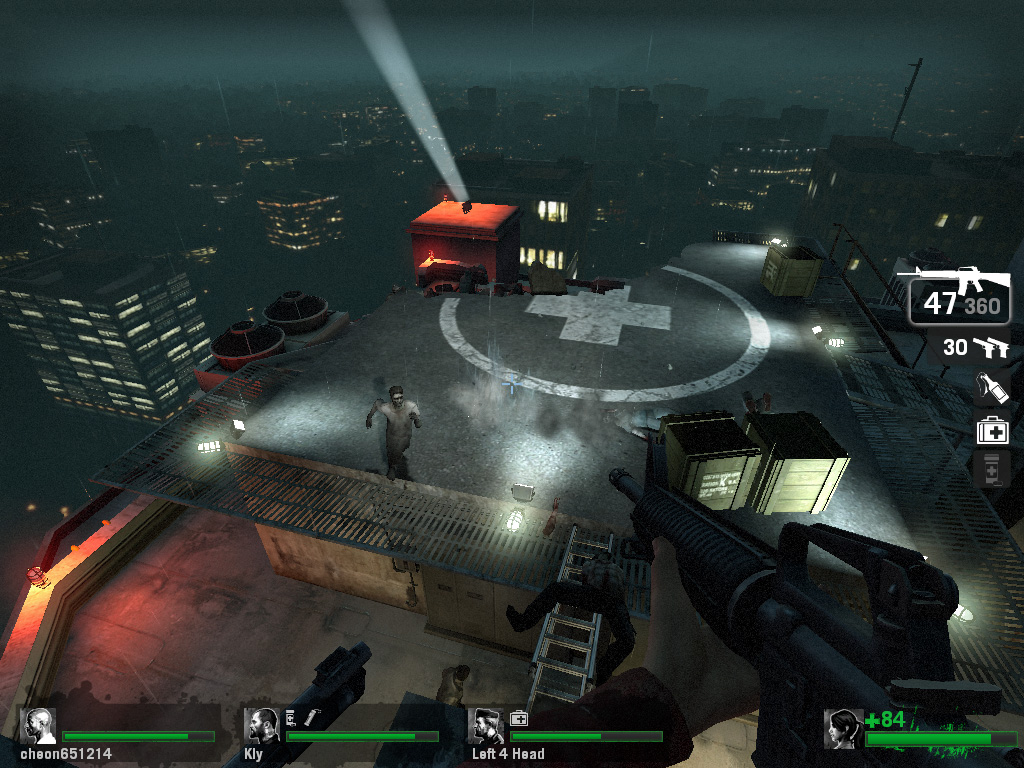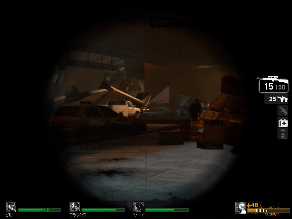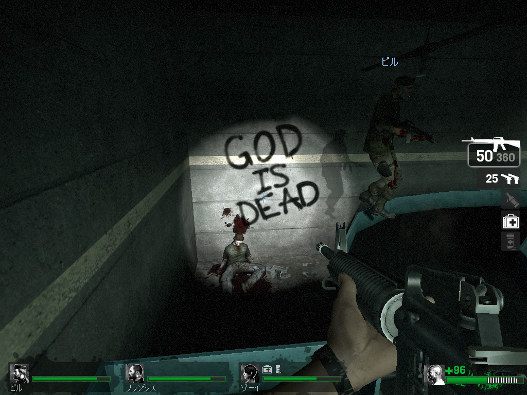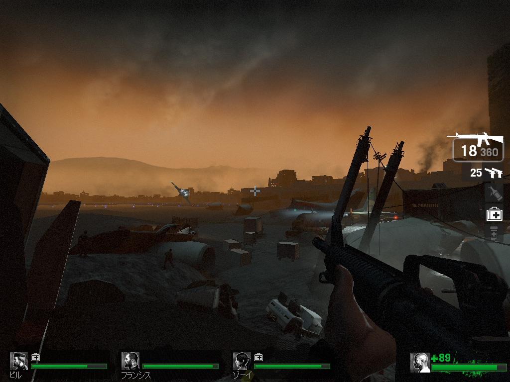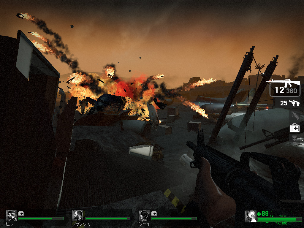 L4Dは,戦闘の素人である(なかにはベトナム帰還兵もいるが)生存者達が,襲い来る感染者(=つまりゾンビ)から逃げ延びることを主眼とした作品だ。ミッションをクリアするためには邪魔な感染者を撃ち殺さなければならないが,感染者をどんなに倒しても,それだけではミッションをクリアすることはできない。目的はあくまでも「脱出」にある。