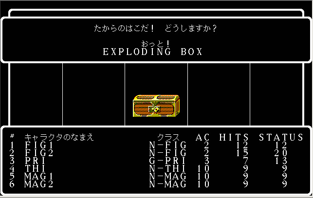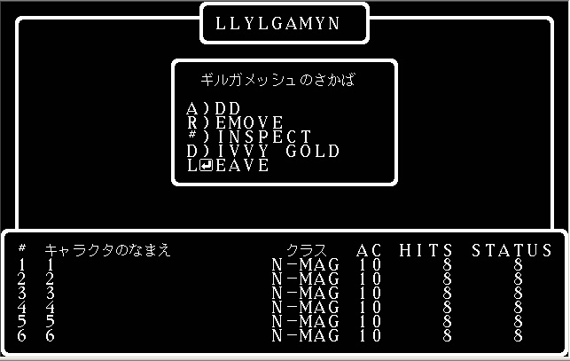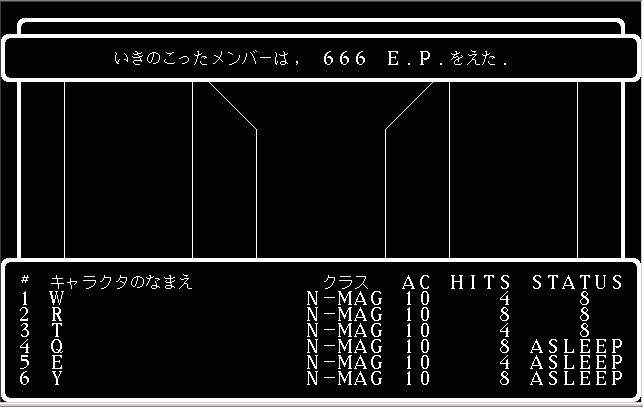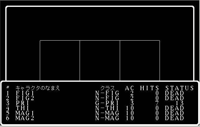 愚か者達は六つの墓をそのまま放置し(「ウィザードリィ」では全滅したパーティを「回収」して「蘇生」させるという手段がある。当然だが,回収なんてするはずがない), 「すごいなあ,パーティを全滅させたまま放置だなんて初めてだよ」とかなんとか言い合いながら次の6人を作ることにした。