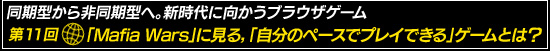 同じ時間に多数のプレイヤーがゲームに参加する“同期型”ではなく,自分のペースでプレイが可能な“非同期型”のゲームシステムを持ったMafia Wars。このシステムがブラウザゲームの「新たなスタンダードになる(というか,すでになっている)」と言い切るライターの徳岡氏の根拠とは?