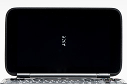 | 画面とキーボードは180度にまで開く。ただ,USBポートに何か差していると180度まで開ききらない |