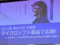 日本マイクロソフトは本日(2011年10月6日),「マイクロソフト学園祭応援キャンペーン」に関する記者発表会を東京都内で開催した。Windows 7搭載PC,Xbox 360,KinectおよびWindows Phoneといった製品を学生向けに貸し出し,学園祭で活用してもらうという取り組みの紹介が行われた,発表会の模様をお伝えしよう。