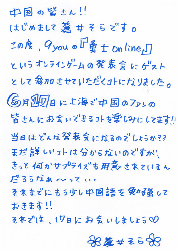 「クロスブレイブ」,中国展開の架け橋に女優・蒼井そらさん