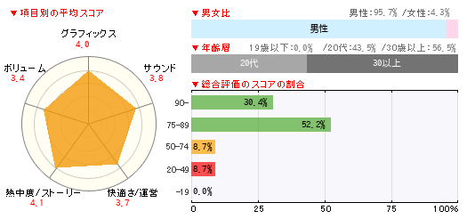 グラフィックス サウンド 快適さ/運営 熱中度/ストーリー ボリューム 3 4 1 3 1