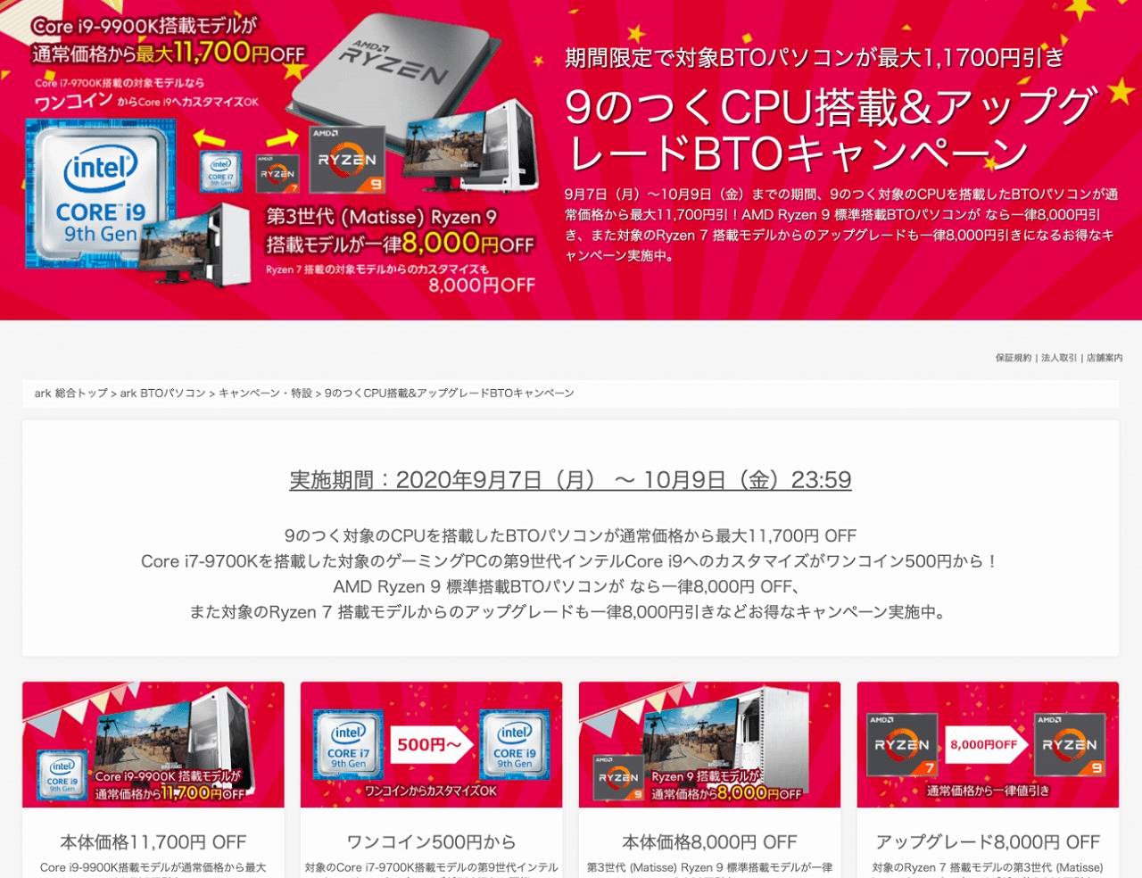 アーク,Core i9やRyzen 9搭載PCが割引価格で買えるキャンペーン開始
