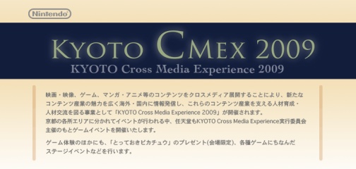 任天堂,産学公連携イベント「KYOTO CMEX 2009」にてゲームイベントを開催,「とっておきピカチュウ」などの会場限定データ配信も
