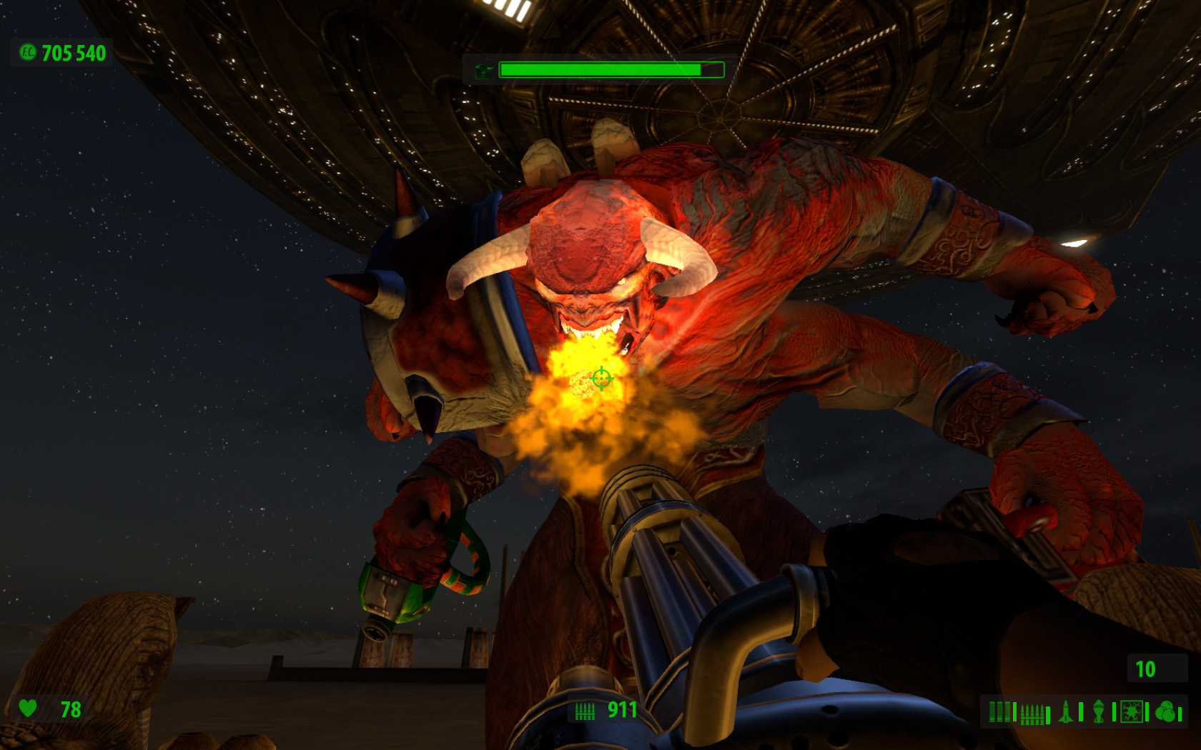 そして2005年には,シリーズ第三弾の「Serious Sam II」が発売された。これは,地球を遠く離れた惑星を舞台に,サムがさらなる大暴れをするという内容で,地球を滅ぼそうとするエイリアンを相手にした最終決戦にふさわしく,従来作を上回るスケールの大きな作品になっている。