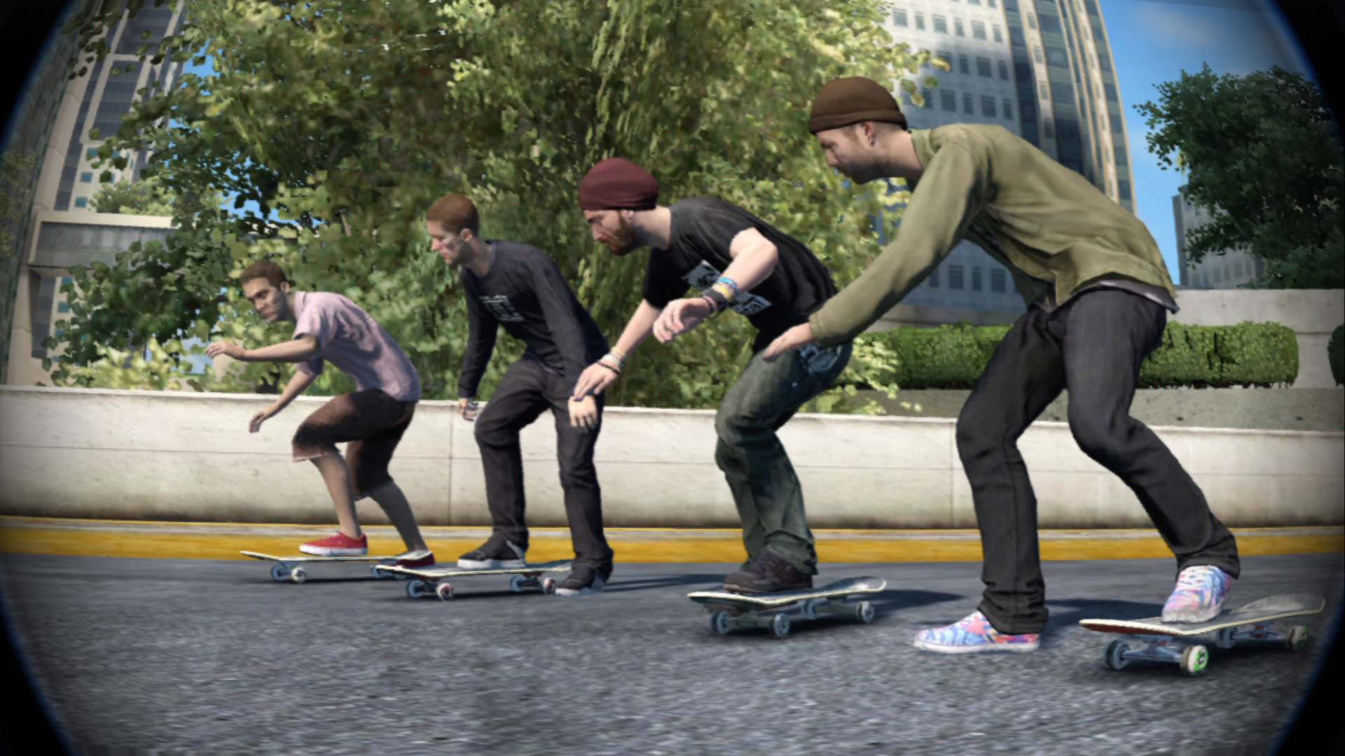 もちろん,失敗したときには派手にぶっ飛んで目を覆いたくなるような姿を見ることになるが,これはこれで楽しいのがSkate 3だ。高所から落下する際にボードを放り投げたり,跳び蹴りをかましながら落ちていったりなど,スケボーとはまったく関係ないジェスチャーもありだ。落下地点で“Push Off”を使うと転倒距離を延ばせるのだが,このときのキャラクターの動きが実に気持ち悪くて大笑い。相変わらず,こういったおバカな要素も満載なので,いろんな意味でアメリカ的ムード満載の本作をぜひ楽しんでほしい。