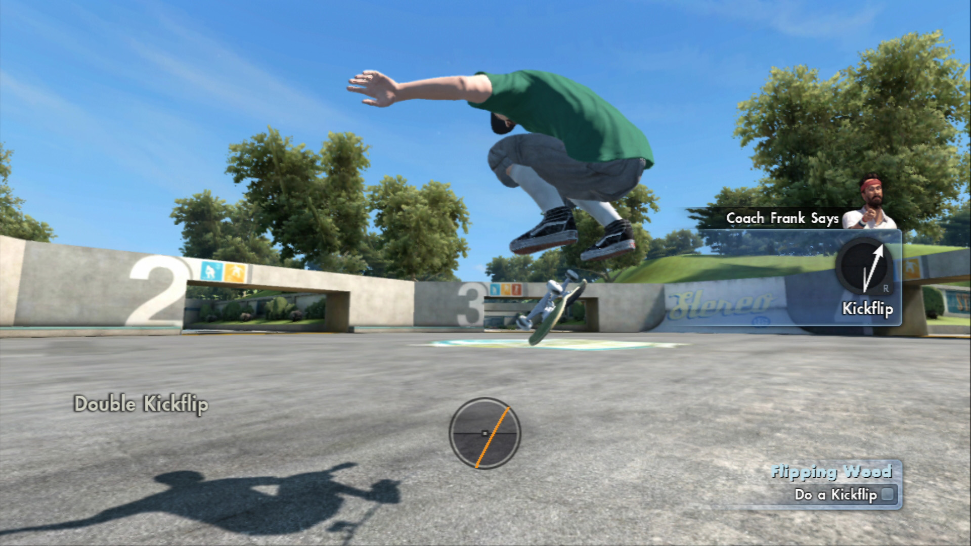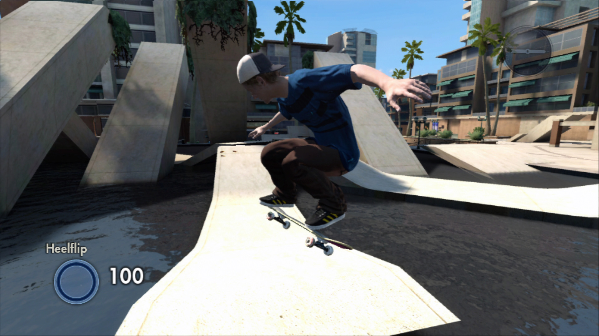 例えば,右スティックを↓に入れて貯めてから↑にすれば“OLLIE”というトリックになり,↓にして左上に跳ね上れば“HEELFLIP”になる。こんな感じで,右スティックの動き一つでトリックを繰り出せるのだ。