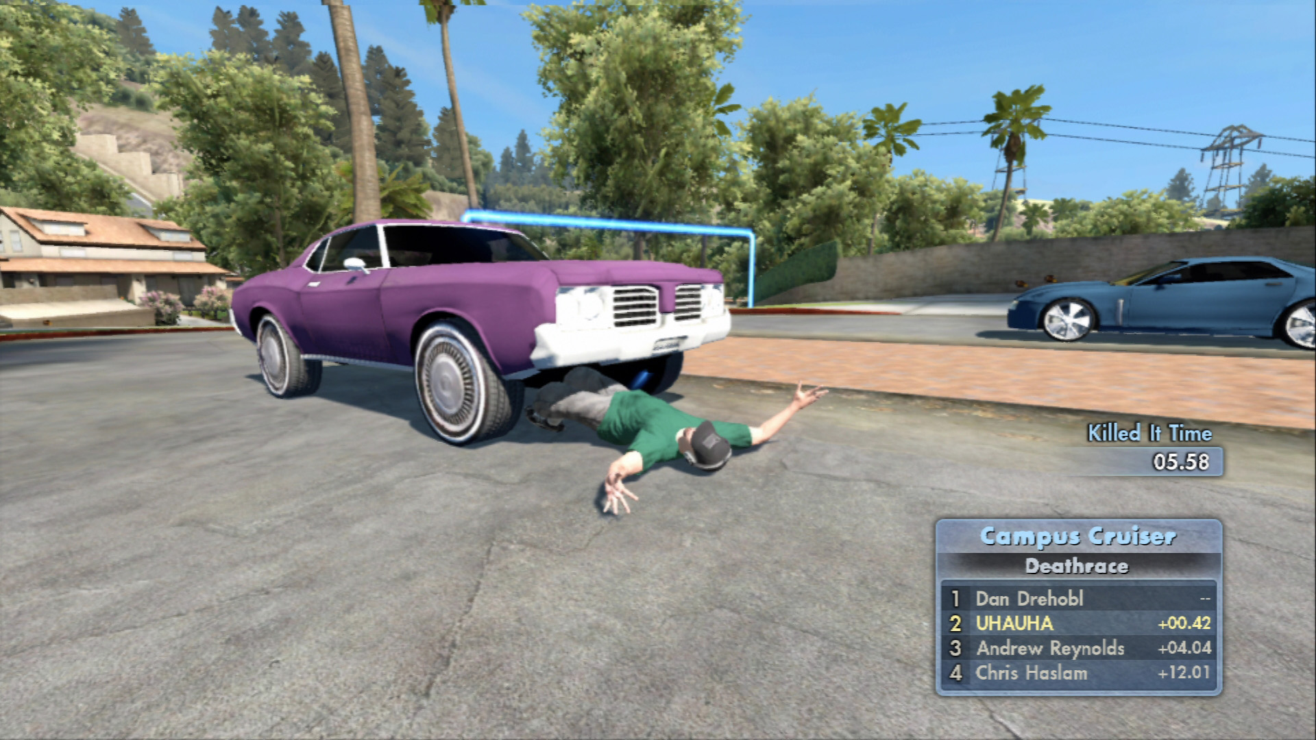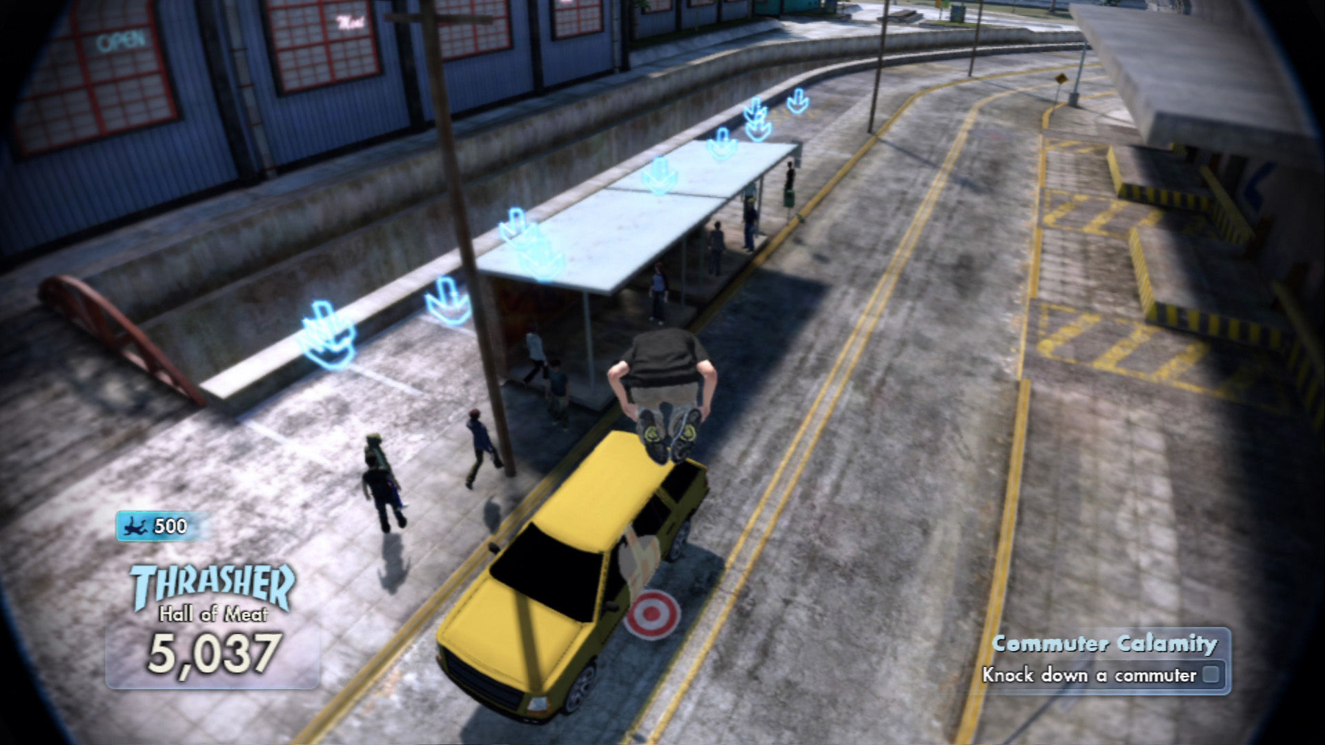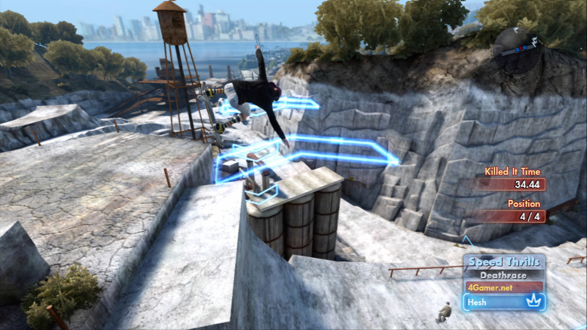 街の各所には,ほかのスケーターと一緒にあらかじめ設定されたコースでレースをするものや,決められたポイントで指定されたトリックを繰り出すものなど,さまざまなタイプのチャレンジイベントが用意されている。中には,高所から飛び降りて骨折したり,道行く人に激突するといった,現実ではできないような突拍子もない課題に挑戦するものある。