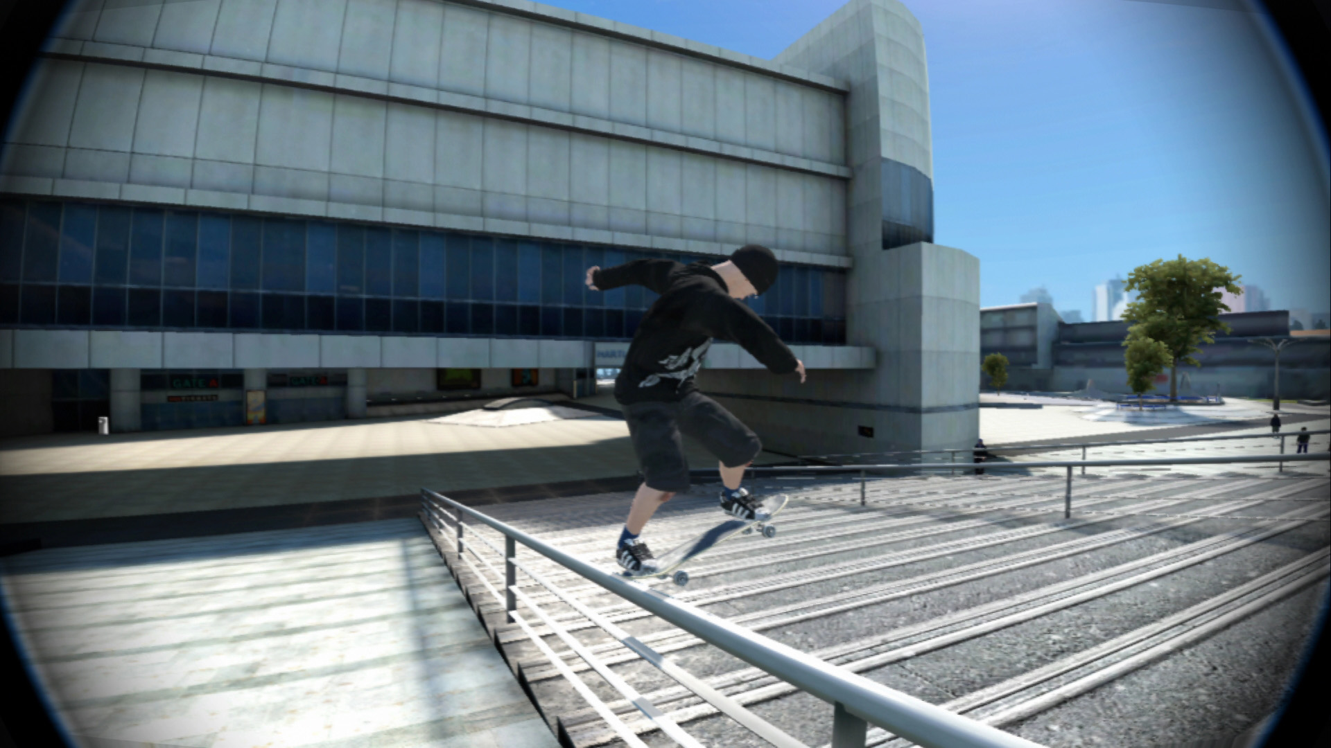 なぜなら,本作の面白さはスケボーを宙に浮かせてさまざまな方向に回転させる,トリックにあると思うからだ。トリック自体は比較的簡単に出せるが,平坦な場所で単独のトリックを使いまくっても,あまりスカッとしないし面白くない。やはり,手すりや段差に向かってトリックを使い,その上をスケボーを滑らせて移動しながら別のトリックへつなぐといった連続技が成功したときの嬉しさや楽しさといったら,思わずガッツポーズを出してしまうほどである。いや,ホント。