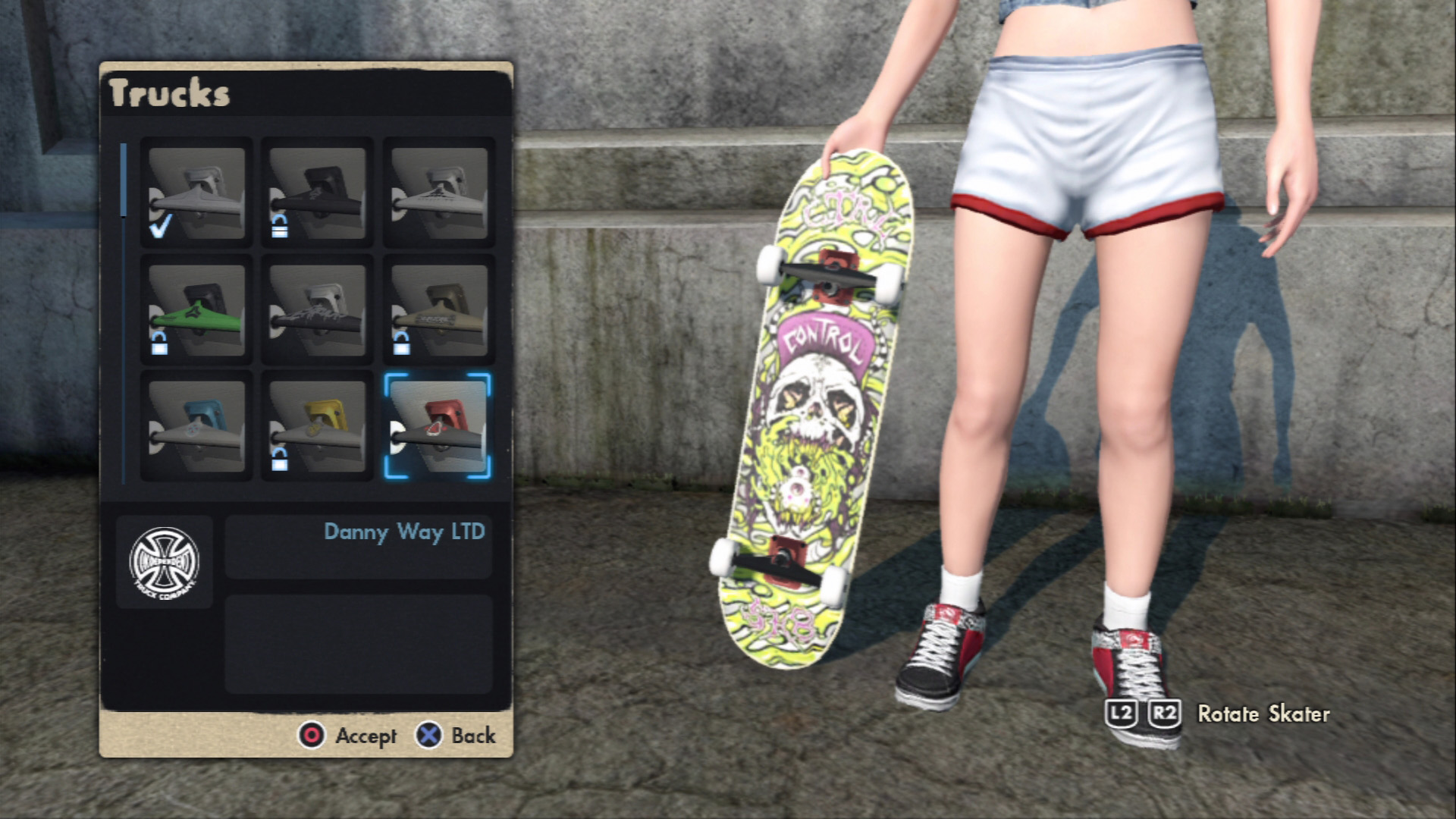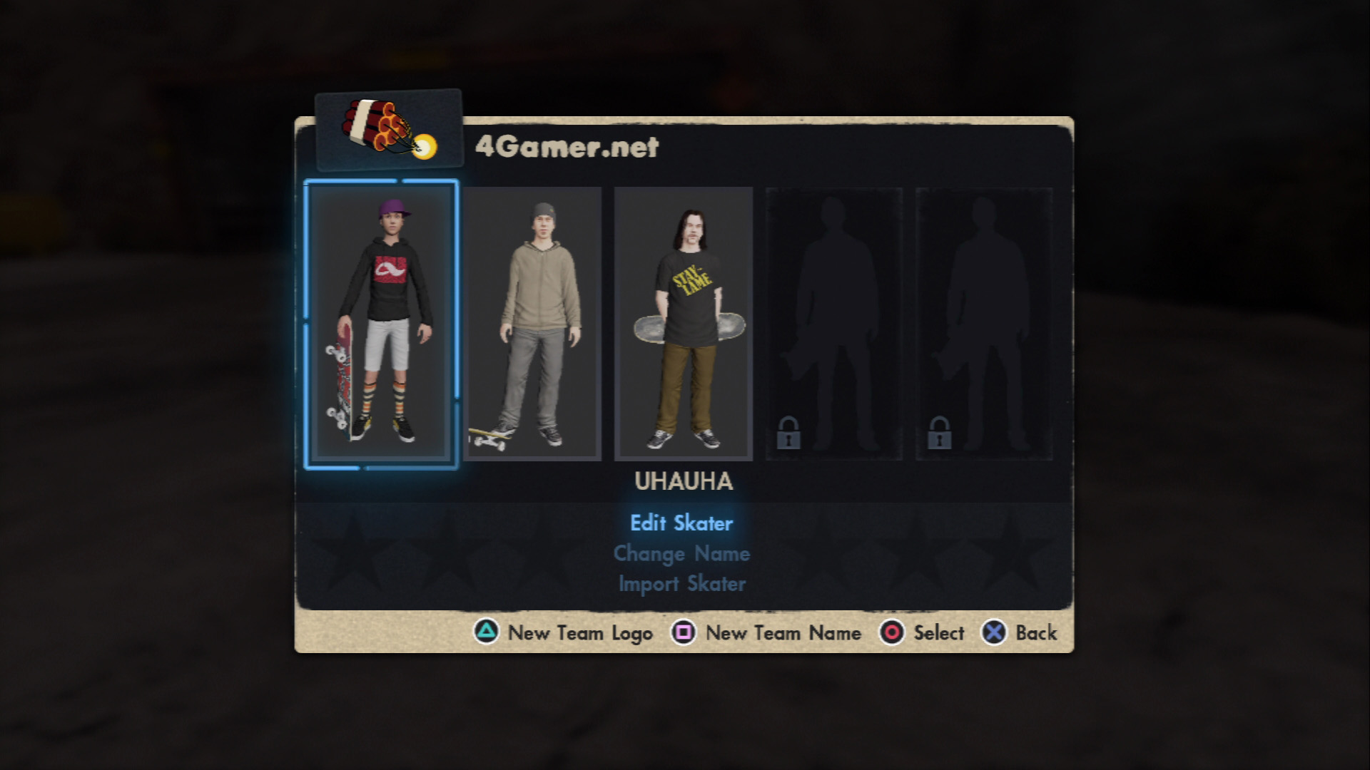 本作の基本操作は実に直感的に行えて,左スティックが「身体の動き」,右スティックが「スケボーの操作」,左右のトリガーが「ボードを掴む」,△,×で加速(プッシュ),○ボタンでブレーキと,こうしたスティック/ボタンの組み合わせでトリックを生み出すのがSkate流だ。