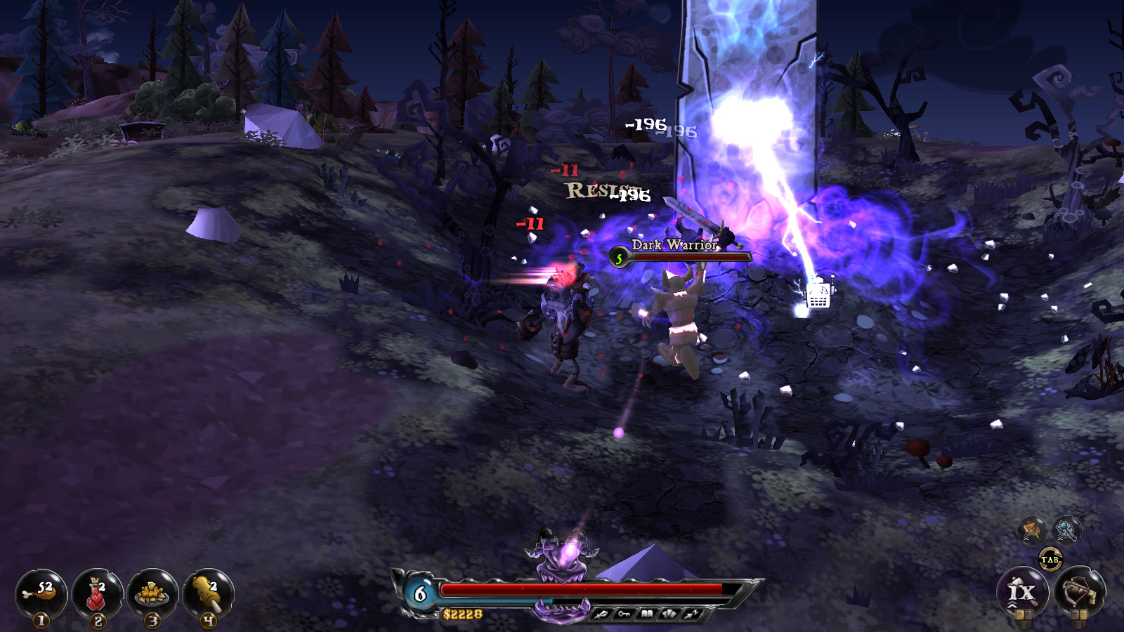 さて,アクションRPGのキモとなる戦闘だが,こちらはスピーディで小気味良いものに仕上がっている。キーボードまたはマウスで移動し,敵を左クリックすればメイン武器で攻撃,右クリックすればサブ武器で攻撃,そしてスペースバーで防御,といったシンプルな操作方法なので,次々に現れるクリーチャーをバサバサと斬りまくって進んでいける。