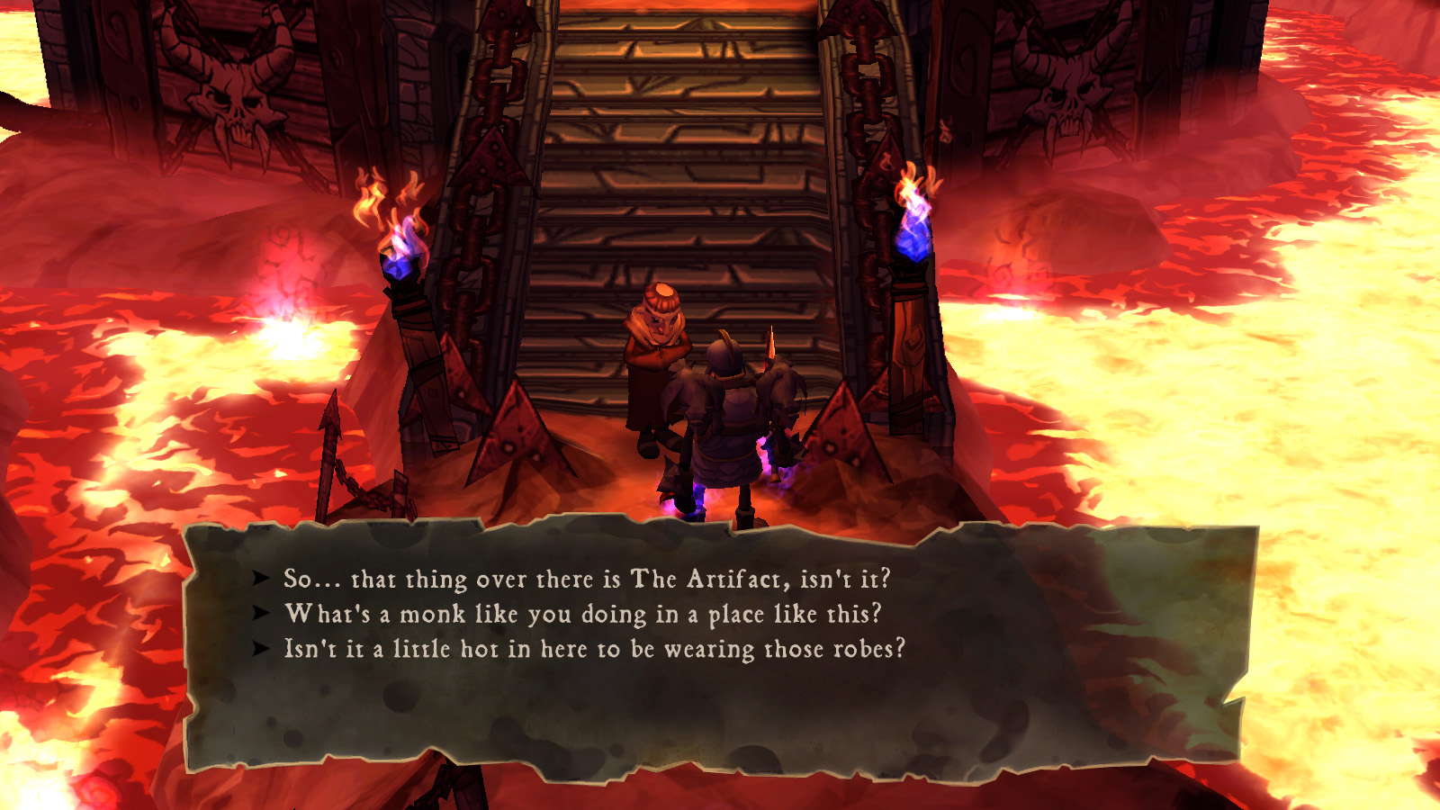 先に書いたように,そんなDeathSpankが,アーティファクトを求めて世界中を旅することが本作のメインストーリーなのだが,旅の途中で出会う人々の抱えるさまざまな問題を解決するといったサブクエストも,多数用意されている。