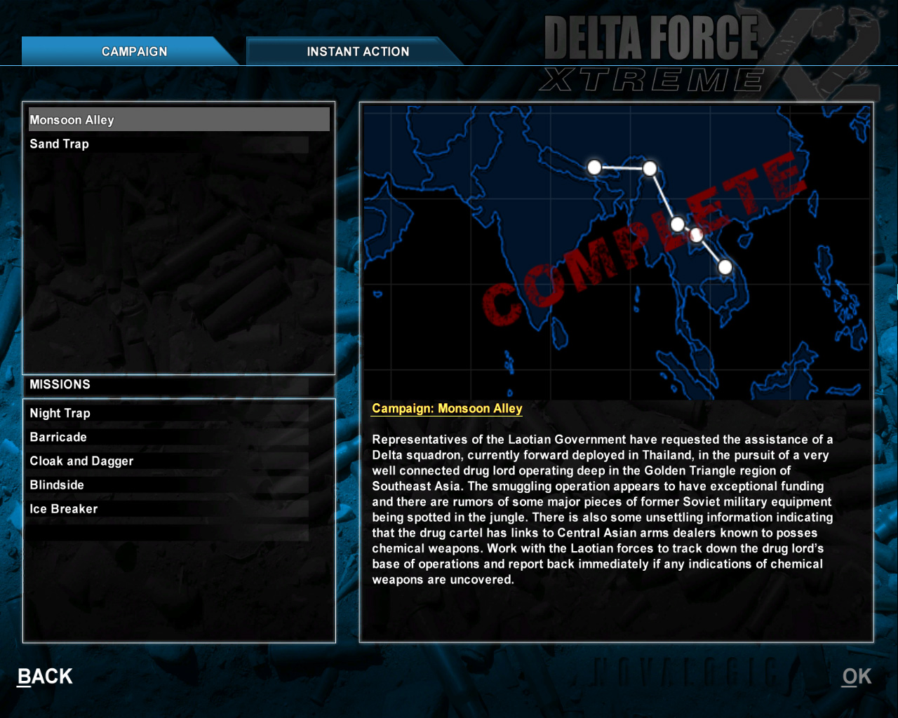 2005年に発売された「Delta Force Xtreme」(X1)は,1998年の初代「Delta Force」を新エンジンでリメイクした作品だった(DF好きのくせに初代だけは遊んでいないので自信はない)。よって本作「Delta Force Xtreme 2」(X2)は,1999年発売の「Delta Force 2」をリメイクした作品である公算が高く,無性に鼻息が荒くなった。なぜならDelta Forceシリーズは,とにかく「2」が傑作だったからだ。