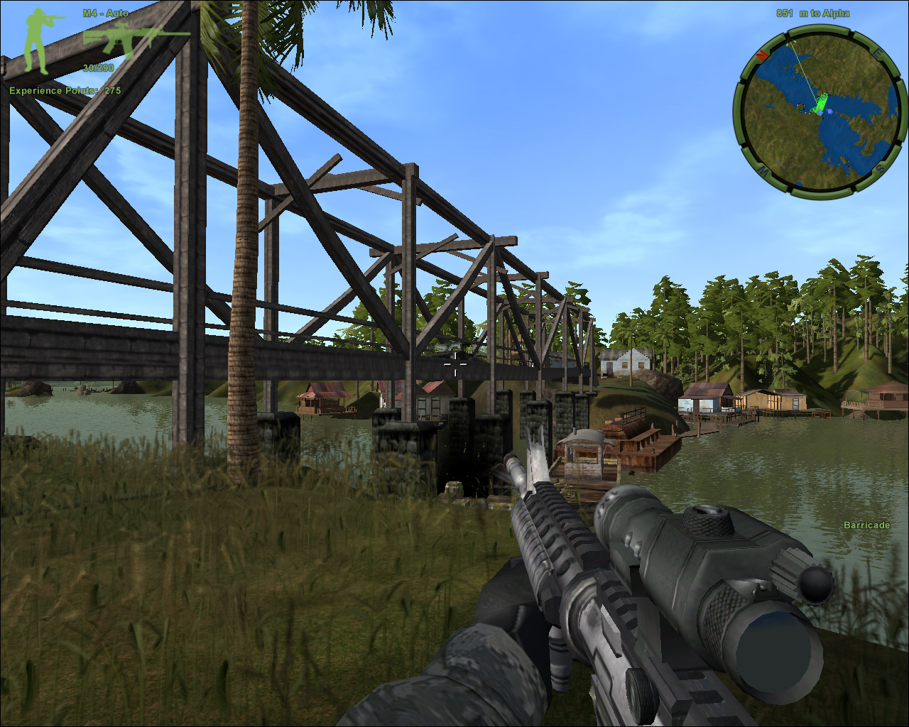 ミッション内容自体は古き良きDFそのもの。ジャングルや荒野などの道なき道を行き,未開の土地に設営された敵の要所を強襲するものが多い。ときには戦車やヘリのようなハードターゲットを相手にすることもある。道は決まっていないので(WayPointは設定されているが),どう進んで,どの方角からどのように攻撃してもOKだ。この開放感,好みによるだろうが,私は昔からとてもお気に入りである。