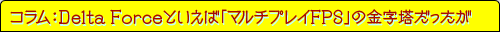 さて,数あるミリタリーFPSの中でも,NovaLogicの「Delta Force」(デルタフォース)シリーズはかなり特殊な作品である。