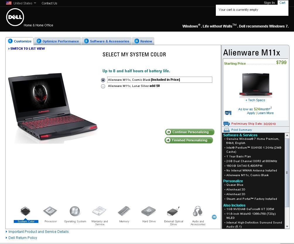 スペック判明,Alenware M11xが米Dellのオンラインショップで受注開始