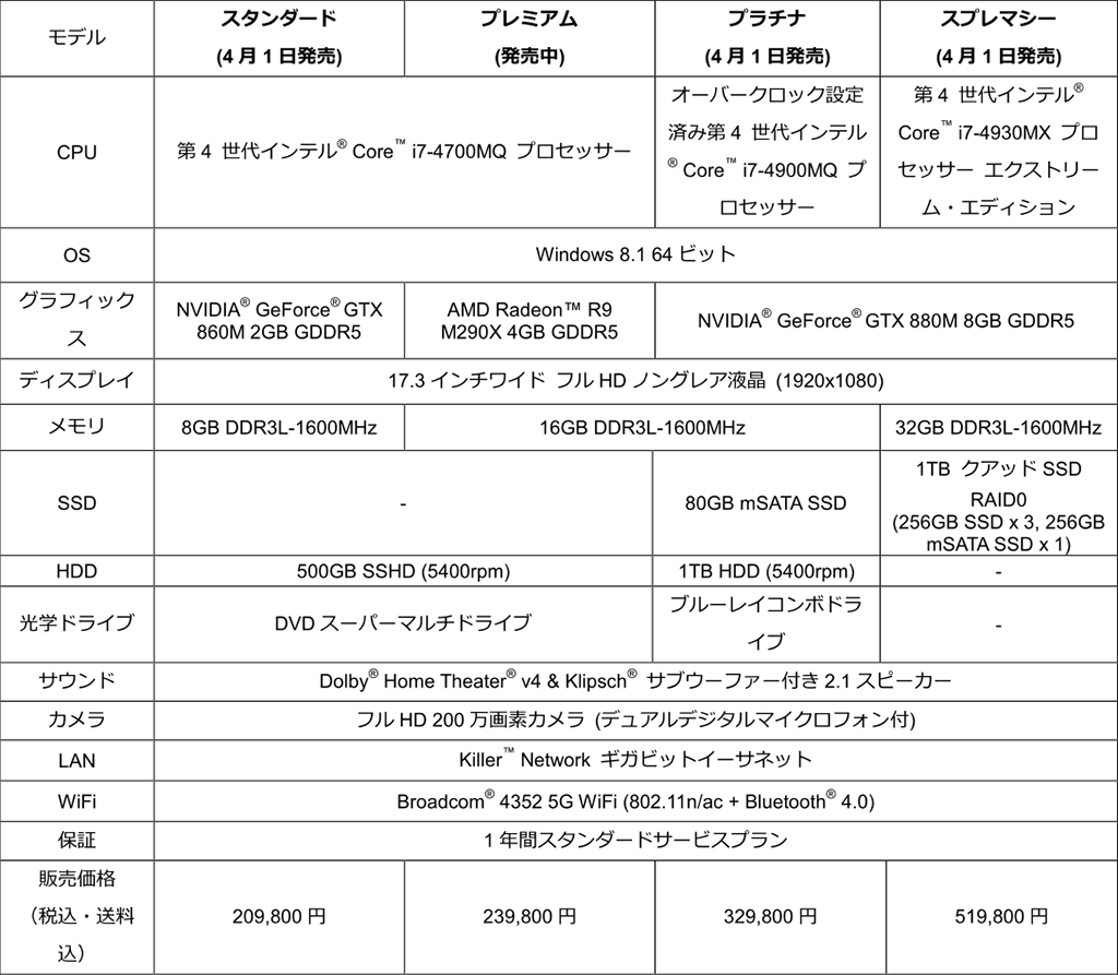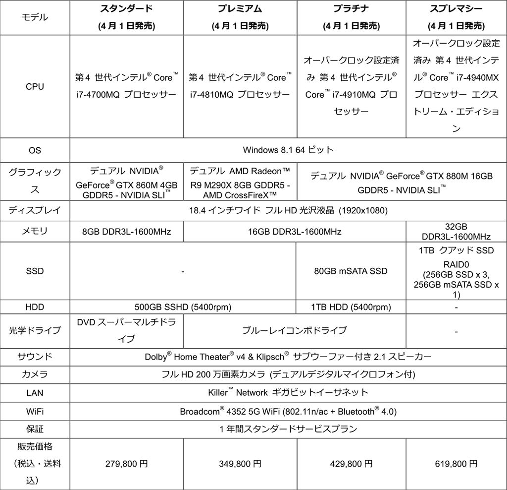 Dell,GeForce 800Mシリーズを採用するALIENWAREの2014年夏モデルノートPC 2シリーズを販売開始