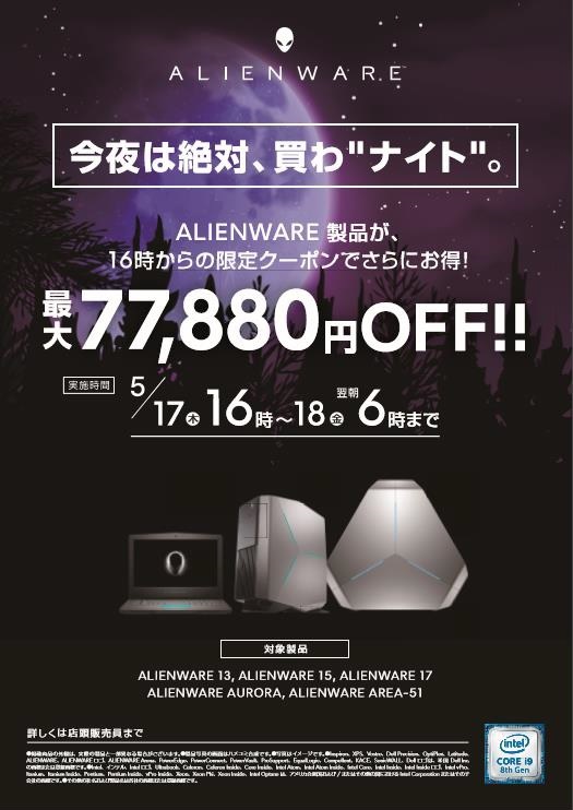 ALIENWARE,一夜限りのナイトセールを5月17日16:00スタート。周辺機器のセールも始まる