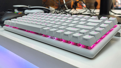 ゲーマー向けキーボードというと,いささかゴツい見た目の製品が多いなか,Alienware Proワイヤレス ゲーミング キーボードは,ボディ部分の側面が丸みを帯びた形状をしているのもポイントだ。いい意味でゲーマー向けらしからぬデザインと言えよう。