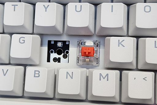 また,Alienware Proワイヤレス ゲーミング キーボードは,キースイッチをユーザーが交換できるという,最近流行りとなりつつある機能を備えるのも大きな特徴である。キースイッチ底面の端子や突起が3本ある「3P」(3ピン)または5本ある「5P」(5ピン)タイプのメカニカルキースイッチと交換できるとのこと。ただ,Dellが交換用スイッチを販売する予定はないそうで,ユーザーが自分で適切なスイッチを用意する必要はある。