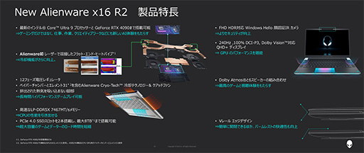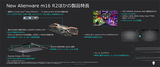 Alienware x16 R2は,Alienware m16 R2よりも薄型高性能を訴求した16インチ級ゲーマー向けノートPCである。