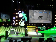 「Project Natal」(プロジェクト ナタル)だ。これはテレビの前に設置して楽しむモーションセンサーで,コントローラなどをまったく必要とせずにゲームを楽しめるという装置。プレイヤーの体の動きはもちろんのこと,顔認識や発した言葉なども理解する技術が用いられているという。これを使って,一体どのようなゲームが楽しめるのか気になるところだ。