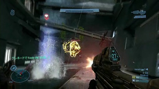 また,これも細かいところだが,Halo: Reachでは“暗殺”に独自モーションが用意されている。従来作では,敵の後ろから殴りかかると暗殺扱いになり,一撃で敵を屠ることができた。今作では,その暗殺に専用のモーションが登場したのだ。上の動画では,あえてスローモーションにして分かりやすく見せているのだが,実際に暗殺を決めると,これが実に格好いい。ちなみに,空中での暗殺は地面への叩きつけになり,漫画「ドラゴンボール」さながらの面白アクションである。