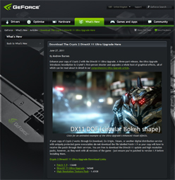 ![]() NVIDIAのGeForce.comにあるCrysis 2 DirectX 11 Ultra Upgrade特設サイト |