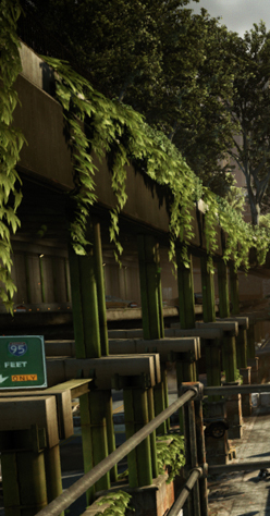 下に掲載した画像は,「高」と「ウルトラ」での比較だが,「高」では,吊り橋のケーブルや船舶の手すりが消えたり,ドラム缶やコンテナの数が少なくなったりしている。