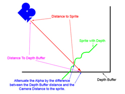 最近の3Dゲームグラフィックスでよく採用されているのが,パーティクルに厚み情報を持たせて,これを基に適切なライティングを行ったりする手法である。