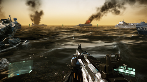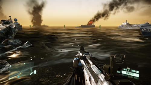 加えてDirectX 11版Crysis 2では,水面が跳ねるほどの波である波頭(Wave Crest,波頂ともいう)表現をも組み込んでいる。これは「ウルトラ」設定にしないと分かりにくい。