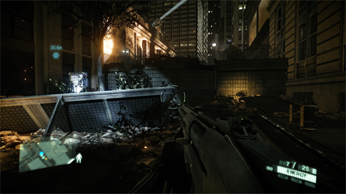 DirectX 9版Crysis 2でも,各種オプションは「高・最高・エクストリーム・ウルトラ」から選べるが,効果はDirectX 11版Crysis 2とはかなり異なる。たとえば「オブジェクト」の場合。「ウルトラ」にしても,テッセレーションは使われないし,視差遮蔽マッピングも適用されない。より遠方でも高精細な3Dモデルが使われるようになったり,表示オブジェクトの絶対量が増えたりするだけである。