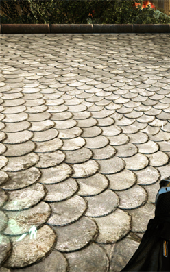 少し面白いのは,「高」だと周辺反射光も削減されてしまっているところ。画像の柱に注目して見てほしい。「ウルトラ」では,光が植物を透過したり反射したりして緑色の周辺反射光が発生し,柱群が照らされることで緑色の陰影を醸し出しているが,「高」だと緑の周辺反射光の支配率が下がっているのが分かるだろう。