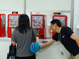 またその隣には「FINAL FANTASY BRIGADE Capsule Toy Area」があり,ソーシャルゲーム「FINAL FANTASY BRIGADE」のキャラクターシールのセットと,ゲーム中で使えるシリアルコードが入ったカプセルベンダーのコーナーが設けられている。価格は1回500円(500円硬貨のみ使用可)。なお,混雑防止のために制限時間が設けられているので,注意してほしい。