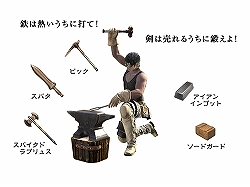 戦闘においては,金属系の敵を弱体化したり,金属系の戦利品を発見しやすかったりといった能力を発揮するが,業物を作り出し,パーティの戦力アップに貢献することこそが,最大の活躍といえるだろう。