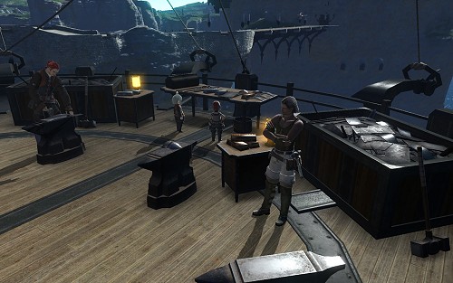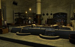 港の片隅に係留されたガレオン船。表向きは外国籍の商船だが,実は海賊諸勢力の顔役「隻眼のヒルフィル」の乗艦であることは公然の秘密。新米海賊スカウトのため,船内に「斧術士ギルド」本部がある。