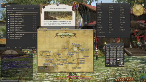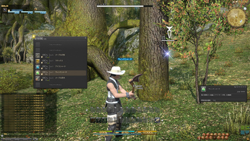 ギャザラーは園芸師のみプレイできたが,こちらは手軽に採集ができるように,大幅な調整が施されている。採集する際は特定のコマンドを選ぶ必要がなく,採集ポイントをターゲットして右クリックするだけというお手軽さ。そうすると,そこで採集可能なアイテムの一覧が表示され,その中から自分が欲しいものを選べば,採集アクションが実行されてアイテムが手に入るという流れだ。