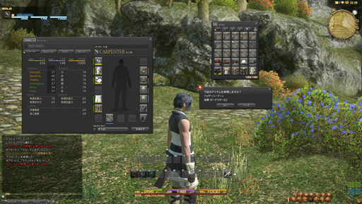 例えば「キャラクター」アイコンを選べば,パラメータと装備欄,ギアセットのウィンドウが,「所持品」アイコンを選べば所持品一覧のウィンドウが,「ソーシャル」アイコンを選べばフレンドやパーティに関するウィンドウが開くといった具合だ。それぞれのウィンドウは直感的に操作できるようデザインされているため,仮にマニュアルを見ていなくても,基本的な操作に問題は生じないだろう。また,アイテム類に関してもすべてがアイコン化され,ドラッグ&ドロップで自由に並び替えや装備の変更ができる。リスト表示でのアイテム管理が大変だった記憶を持つ旧FFXIVプレイヤーの一人として,本当に快適になったんだ……と感じ入ってしまった。