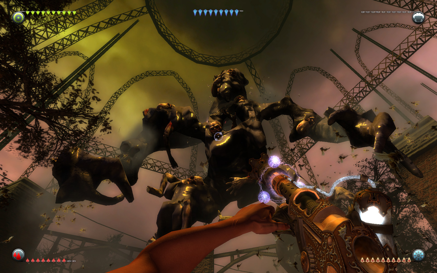 そのため,クリーチャーや武器のデザイン,音楽,マップ構成など,全編に漂う雰囲気はPainkillerそっくりで,Painkillerのファンだった人ならすんなりとその世界観に入っていけるだろう。
