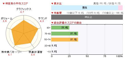 グラフィックス サウンド 快適さ/運営 熱中度/ストーリー ボリューム 4 3 3 4 3 -