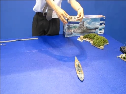 「地上航行艦船」という奇怪なジャンルの製品が登場してきた。これはウォーターラインで切断された艦船を水面を模したシート上で動かすラジコンなのだが,まず,模型のディテールがなかなか凄い。RC操作では艦の前進や旋回のほか,砲塔なども操作できる。