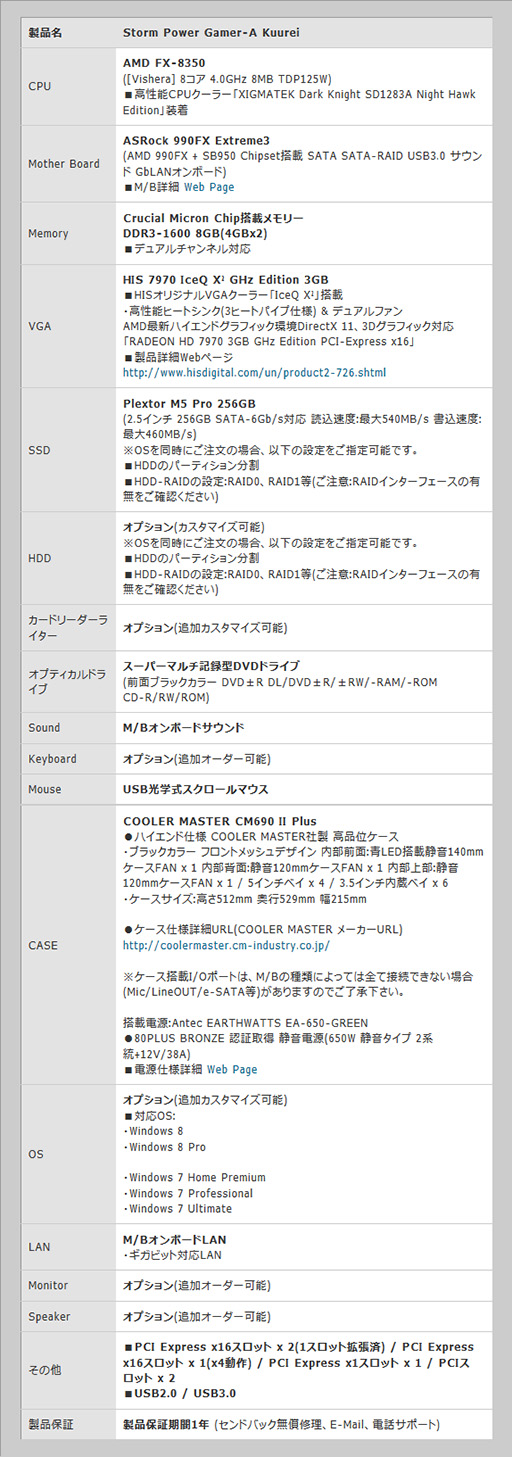 STORM,HD 7970とAMD FX搭載の空冷デスクトップを数量限定で発売