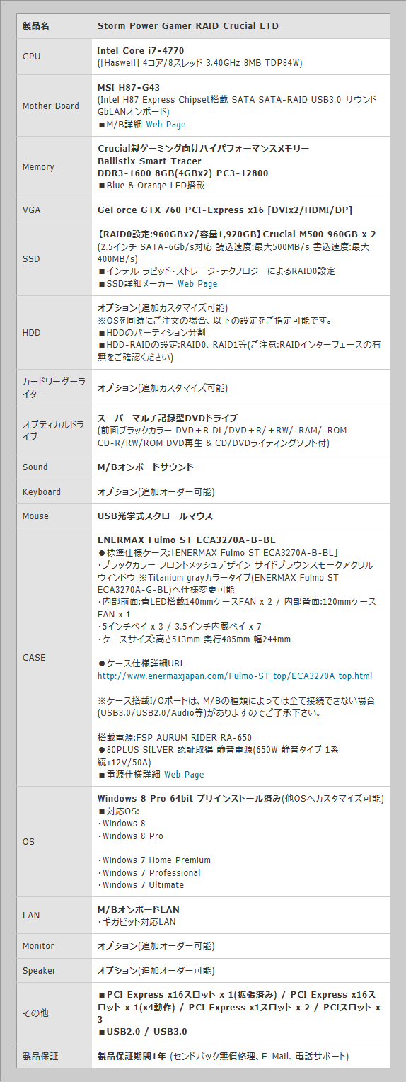 容量960GBのMicron製SSDをRAID 0構成で搭載したゲームPCが発売に
