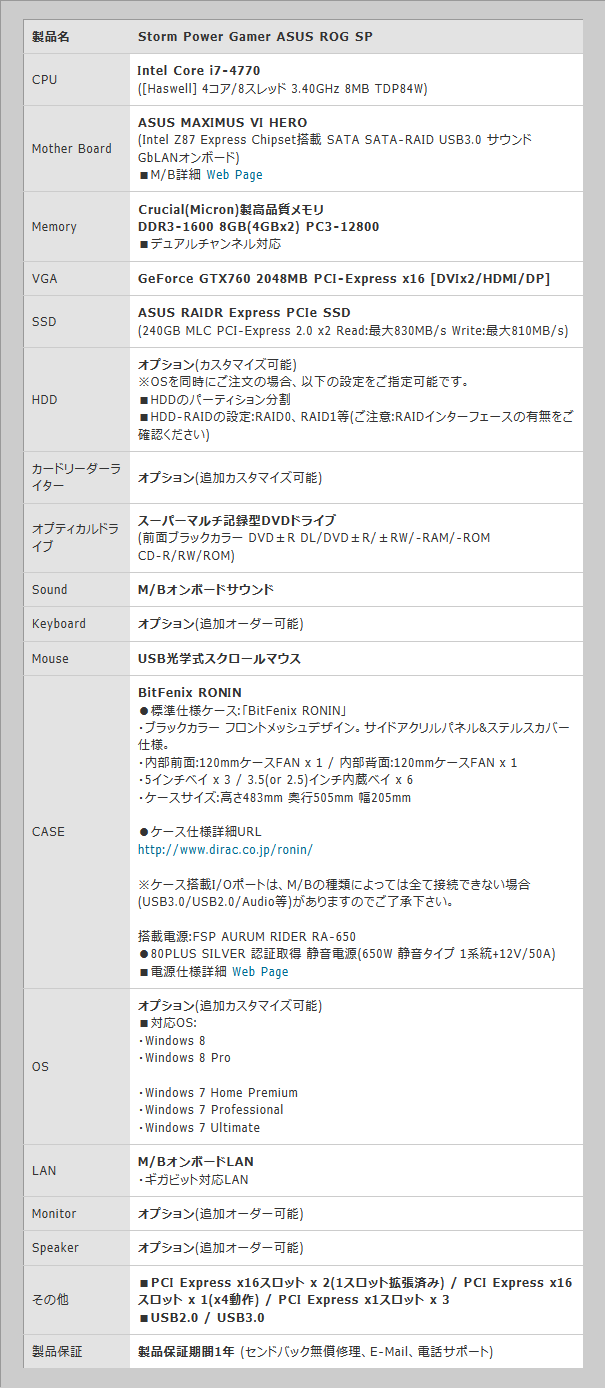 Storm,R.O.G.のマザーボードとSSD「RAIDR Express」を採用したゲームPC